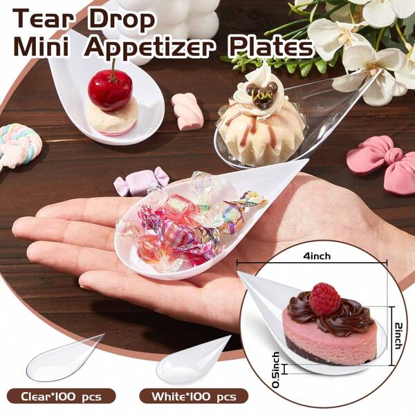 10/20/30/50 4inch Tear Drop Mini Appetizer Plates, Clear Plastic Dishes , Desserts And Appetizers Dishes Serving Plate Small Catering Dessert Tasting Cups For Afternoon Tea Time Mini Dessert |
