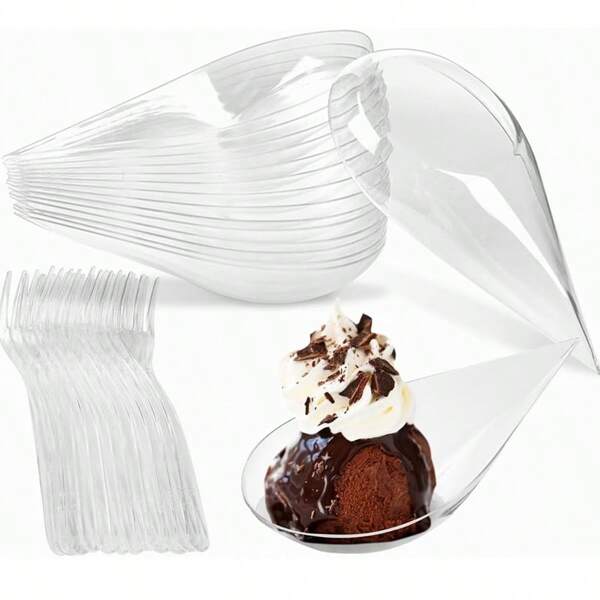 20/100/200 Pieces (Including Fork) Of Mousse Desserts, Cakes, Seasons, Dipping Sauces, Snacks, Parties, Birthdays, Weddings, Afternoon Tea, Desserts, Transparent Colored Cups, Suitable For Festivals And Birthday Celebrations |