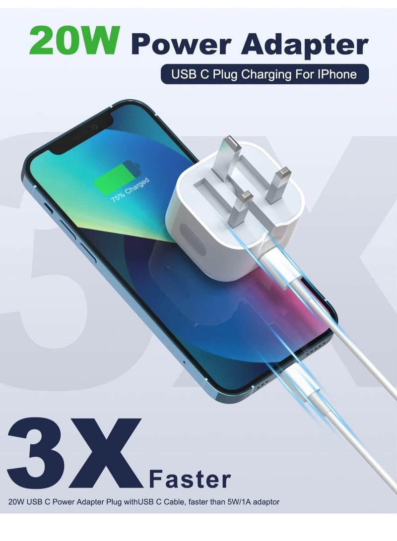 Be the first to review “20W USB-C Fast Charger for iPhone 14/14 Plus/14 Pro/14 Pro Max – Type C PD Wall Charging Plug with 5FT Cable – UK Type C Power Adapter for iPhone 13/12/11/X/XR/XS/SE, iPad Pro, and More”
