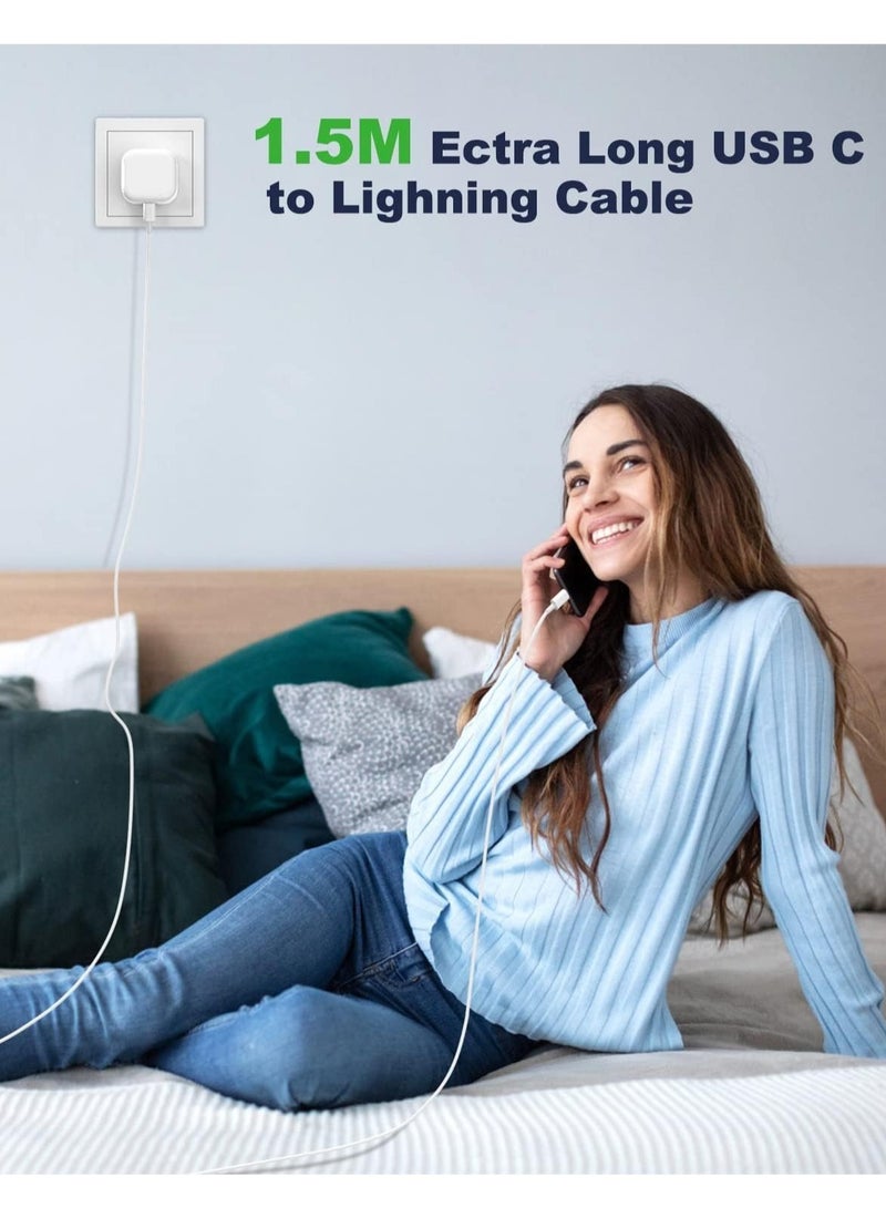 20W USB-C Fast Charger for iPhone 14/14 Plus/14 Pro/14 Pro Max – Type C PD Wall Charging Plug with 5FT Cable – UK Type C Power Adapter for iPhone 13/12/11/X/XR/XS/SE, iPad Pro, and More