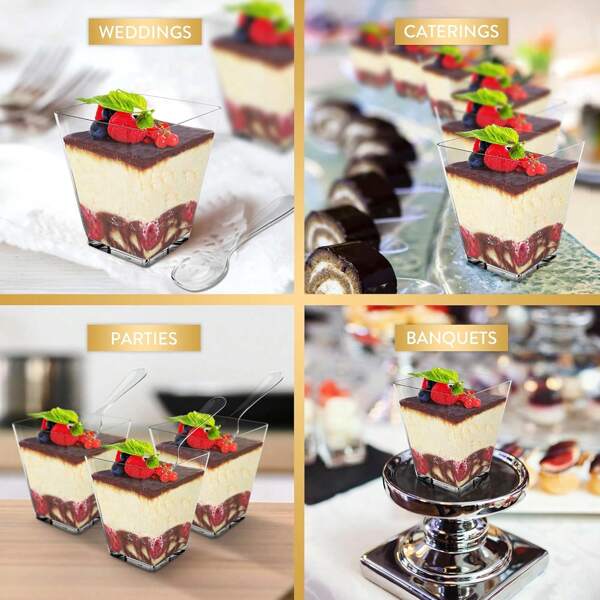 25/50/100/200Pcs, 5 Oz Plastic Clear Square Parfait Cups With Spoons, Party Small Serving Dessert Bowls For Appetizers, Puddings, Mousse, Yogurt, Parfait Ice Cream |