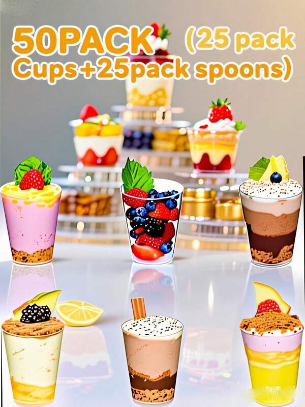 5/50pcs 5 Oz Dessert Cups With Spoons ,Tiramisu Cup Shooting Dessert Cup Clear Plastic Parfait Cups Round Appetizer Cups Fruit, Pudding, Mousse, Ice Cream, Party, Wedding, Valentine’s Day New Year (An Additional 5 Spoons)