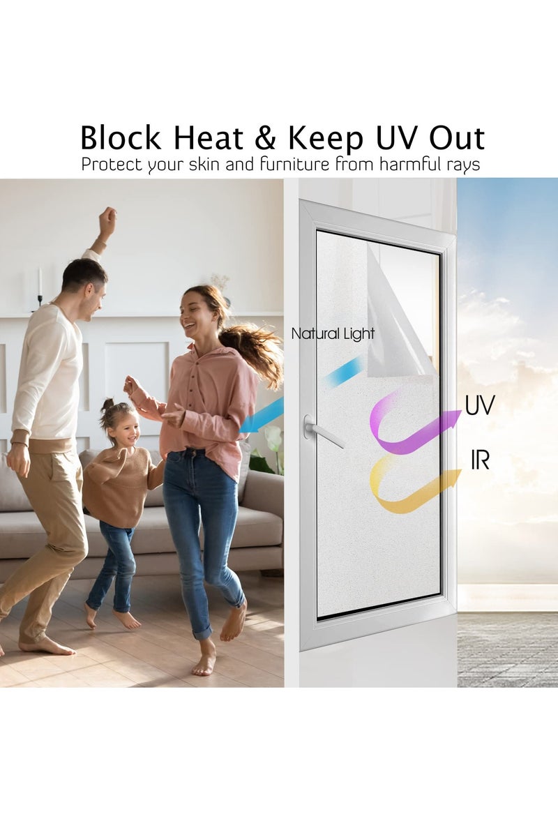 Chielor Frosted Window Privacy Film Heat Control UV Blocking, Static Cling Non-Adhesive Reusable Door coverings for Bathroom Home Office (35.4 Inch x 6.5 Feet)
