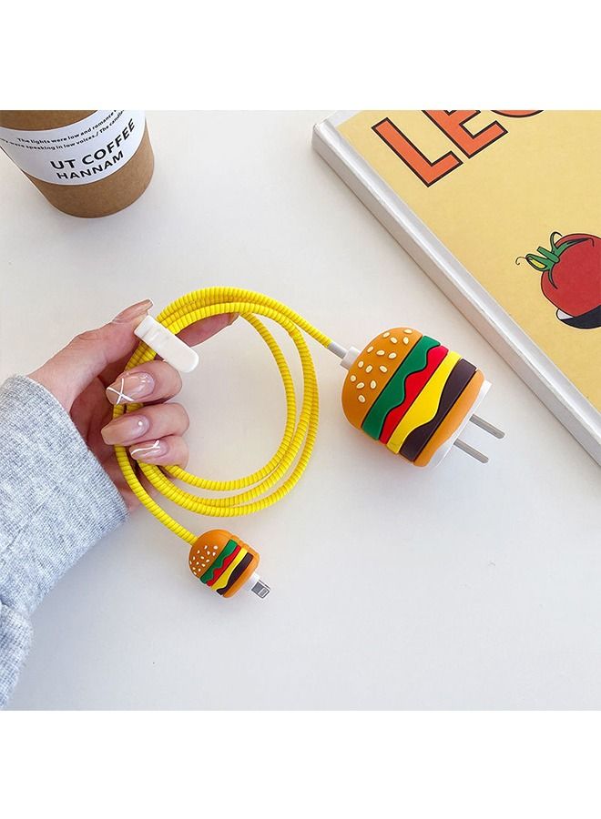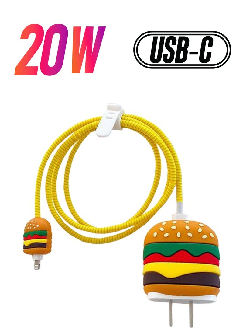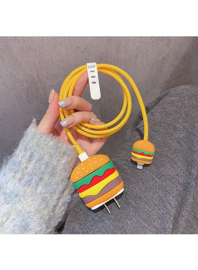 Cute Protective Case for 18W/20W USB-C Adapter Charger, 3D Cartoon Protective Cover, Cable Protector Sleeve for Iphone Charger (Hamburger)