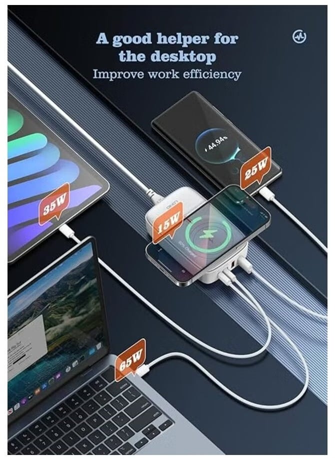 * 5 Charging Ports for Simultaneous Charging — Equipped with 5 ports, including USB Type-C and USB-A, this charger lets you charge multiple devices at the same time. Perfect for your home office or desk setup, it enables you to power your laptop, tablet, phone, and more all from one charger.