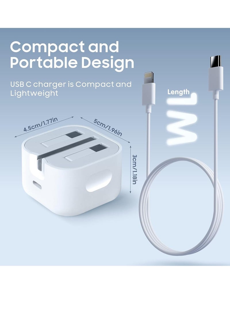 [Great USB C Fast Charging Plug]This set if charger adapter set supports max 20W output. The USB C charging plug with 1 meter cable which provides fast charger speed for iPhone series devices. [Safe Fast Charging] 20W Type charger adapter are designed for deliver fast, safe and stable charging. We selected high-quality smart chips and materials. USB C wall charger has built-in multiple safety guard functions to eliminate over-voltage, over-current, over-heating and short-circuit issues. [Portable and Compact Design] Type C plug wall charger can save space in your bag. Portable and compact design is suitable for travelling office and home use. The built-in power tuner chip is able to intelligently identify your mobile phone’s charging protocol and allocate power automatically. [Fast After Sales Service]We can offer your free exchange within 90 days. If you encounter any issues during use, please do not hesitate to contact us in time. We will reply you within 24 hours to provide you with satisfactory solutions.[Universal Compatibility] Baytion iPhone charge cable combination is simple and practical, USB C Charger and Adapter compatible with iPhone 14/14 Plus/14 Pro/14 Pro Max/13/13 Mini/13 Pro/13 Pro Max/12/12 Mini/12 Pro/12 Pro Max/11/11 Min/11 Pro/11 Pro Max/SE 2020/ XS/XS Max/XR/X 8 7 6 6S Plus, for iPad Pro and more. [Great USB C Fast Charging Plug]This set if charger adapter set supports max 20W output. The USB C charging plug with 1 meter cable which provides fast charger speed for iPhone series devices. [Safe Fast Charging] 20W Type charger adapter are designed for deliver fast, safe and stable charging. We selected high-quality smart chips and materials. USB C wall charger has built-in multiple safety guard functions to eliminate over-voltage, over-current, over-heating and short-circuit issues. [Portable and Compact Design] Type C plug wall charger can save space in your bag. Portable and compact design is suitable for travelling office and home use. The built-in power tuner chip is able to intelligently identify your mobile phone’s charging protocol and allocate power automatically. [Fast After Sales Service]We can offer your free exchange within 90 days. If you encounter any issues during use, please do not hesitate to contact us in time. We will reply you within 24 hours to provide you with satisfactory solutions.