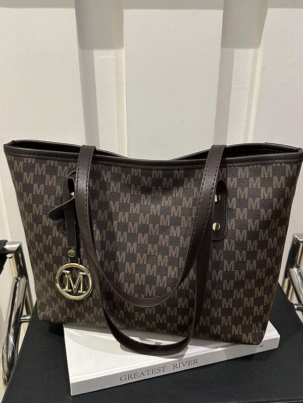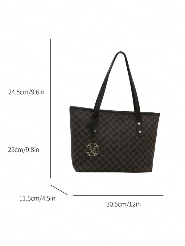 European And American Cross-Border Personalized Large Capacity Letter Minimalist Printed Tote Bag, Women’s New Rhombus Commuter Shoulder Bag