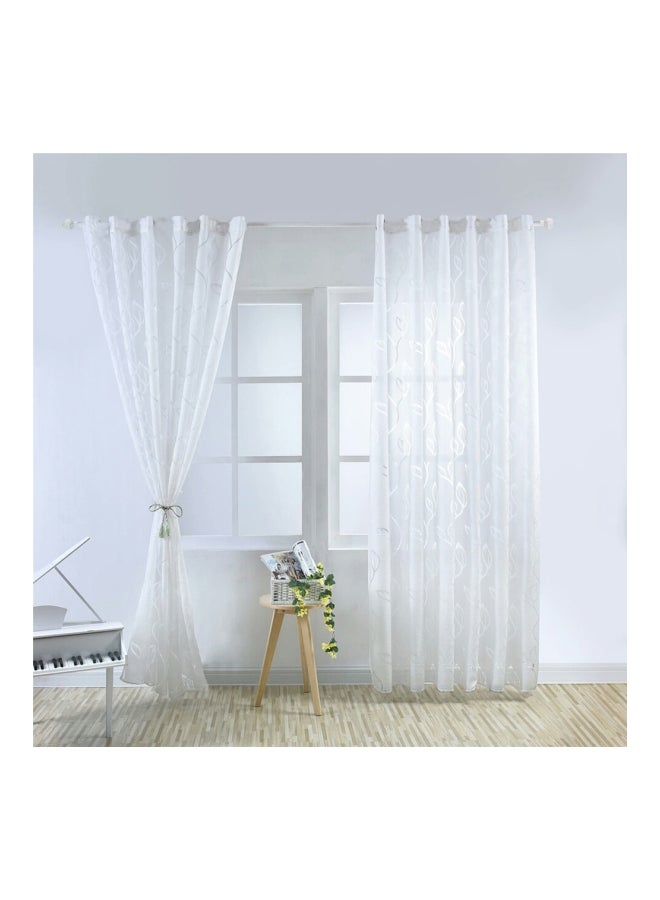 Leaf Printed Semi-shading Window Curtain White 79x40inch