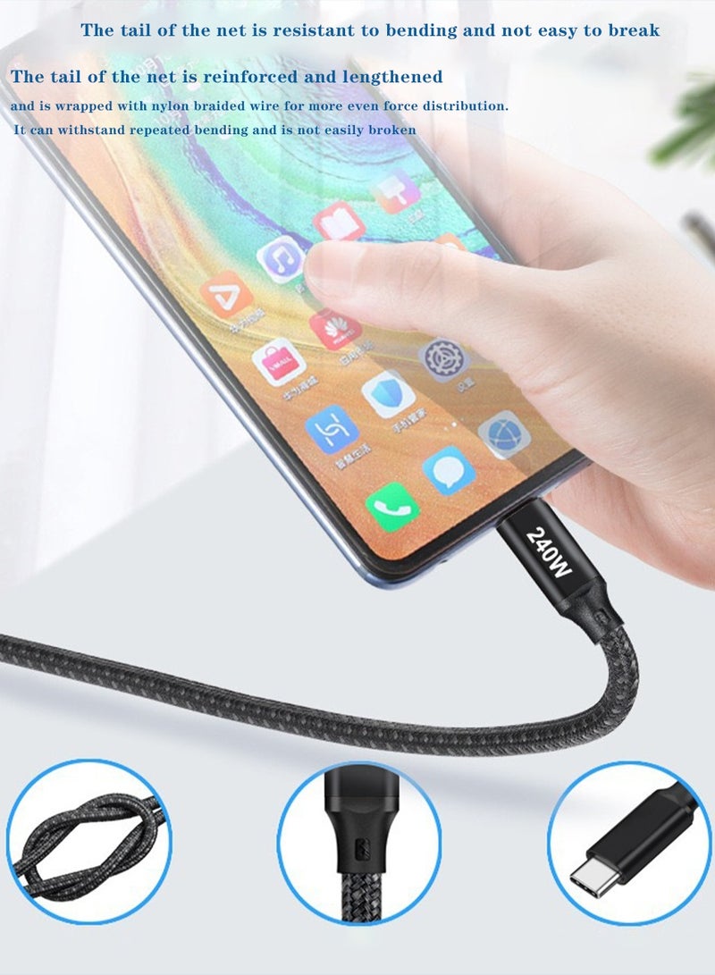 *Nylon-Braided USB C to C cable with aluminum alloy casing, 10000+ bending test ensures a durable & flexible life span.