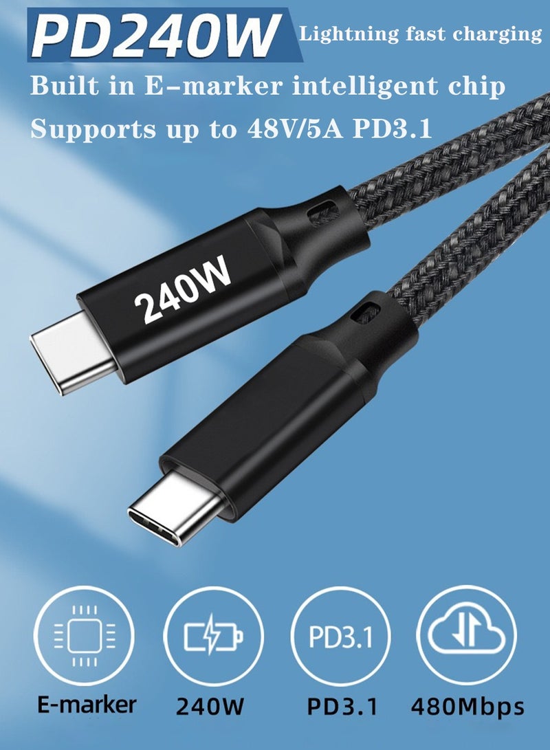 * PD 240W Power Delivery: UGREEN USB Type C to Type C cable supports PD fast charge up to 48V/5A,PD3.1 (max), 15V/5A, 12V/5A, 9V/5A, 5V/5A at240W with USB-C Power Delivery adapters such as PD /QC3.1rapid recharge