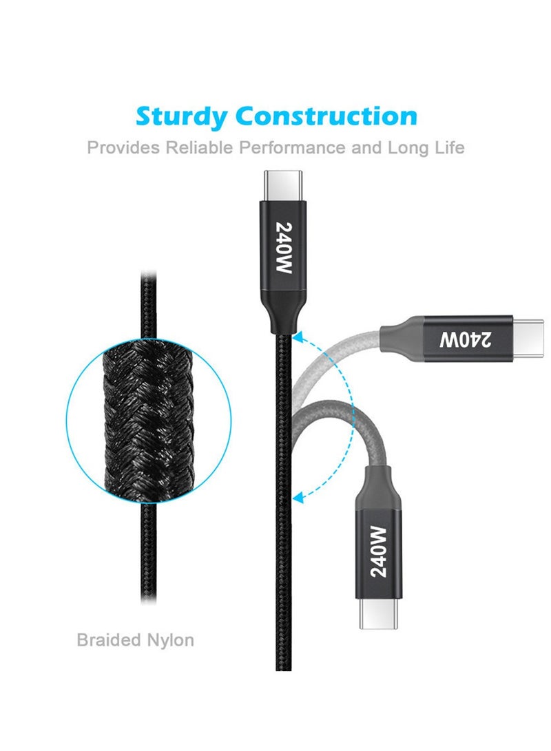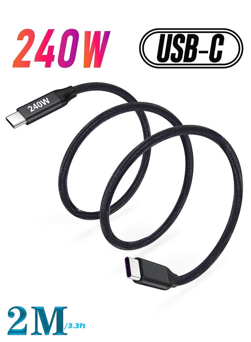 Luttec 240W USB Type C Cable Nylon Braided USB C to USB C 2.0 Cable (C to C) Compatible For iPhone 16 15 Pro Max iPad Pro Air mini 6 MacBook Pro Air Galaxy S24 S23 Ultra Z Fold Xiaomi Honor OPPO OnePlus 2M Black