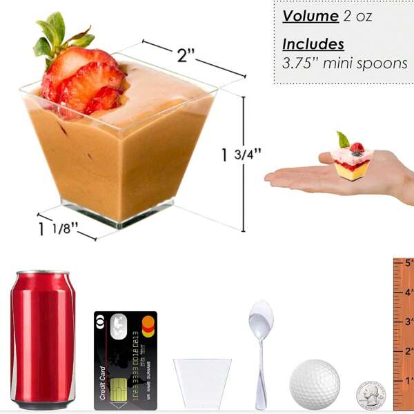 Be the first to review “Mini Dessert Cups, 25pcs/50pcs/100pcs 2oz/60ml Clear Plastic Parfait Appetizer Cups With Spoons Mini Square Dessert Bowls For Serving, Tasting |”