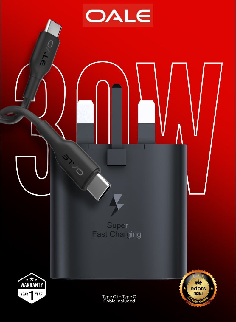 Power up your devices at lightning speed with the OALE iFast 70 Quick Charger. Featuring 30W super fast charging, this UK 3-pin charger comes with a 100cm Type-C to Type-C cable (iCable 5) included. Built with advanced protection systems and stable current output, it ensures safe, reliable, and efficient power delivery for your phones, tablets, and USB-C gadgets. Ideal for users who value speed and safety in one compact, durable design — backed by a full 13-month warranty.