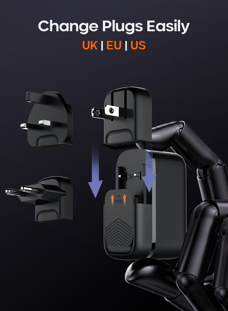 Portable, Compact, Universal: Change plugs from US to UK, EU and AU on the go, when you travel and need your adapter international. Carry the multi plug easily — just fold the pins and put it in your bag. Slim and clean design make PEGANT 65W GaN charger adapter really stand out.