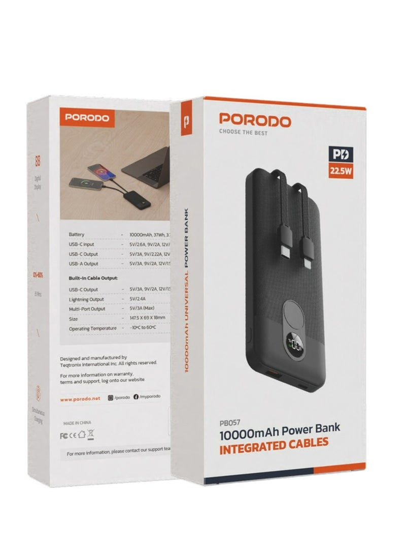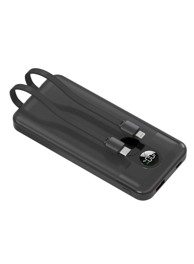 Home Power Banks come in handy on many occasions, but the only accessory that is certainly needed is a cable-attached portable Power bank just in case you need to charge your mobile devices on the go. If you look at the design of this portable charger, you can say that it is practical, effective, and simply convenient, so you can always charge your gadgets everywhere. With its robust 10,000mAh battery capacity (37Wh, 3.7V), you are equipped to charge any smartphone, tablet, or USB device several times over. The USB-C output of the battery has charging options of up to 20W with 5V/3A, 9V/2.22A, and 12V/1.67A fast charging support, so any USB-C device will not take long to charge. It also has several USB-A fast charging protocols (5V/3A, 9V/2A, 12V/1.5A, 10V/2.25A, and up to 22.5W) for use with USB-A devices in addition to high output currents.