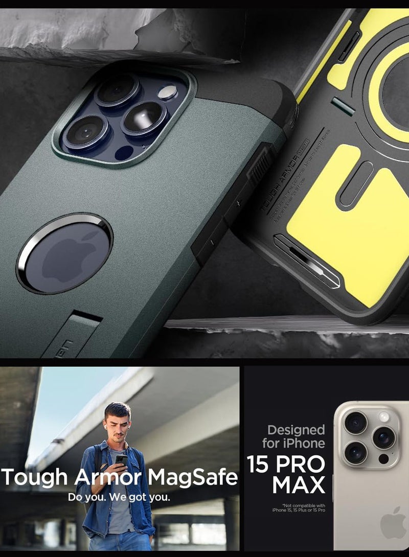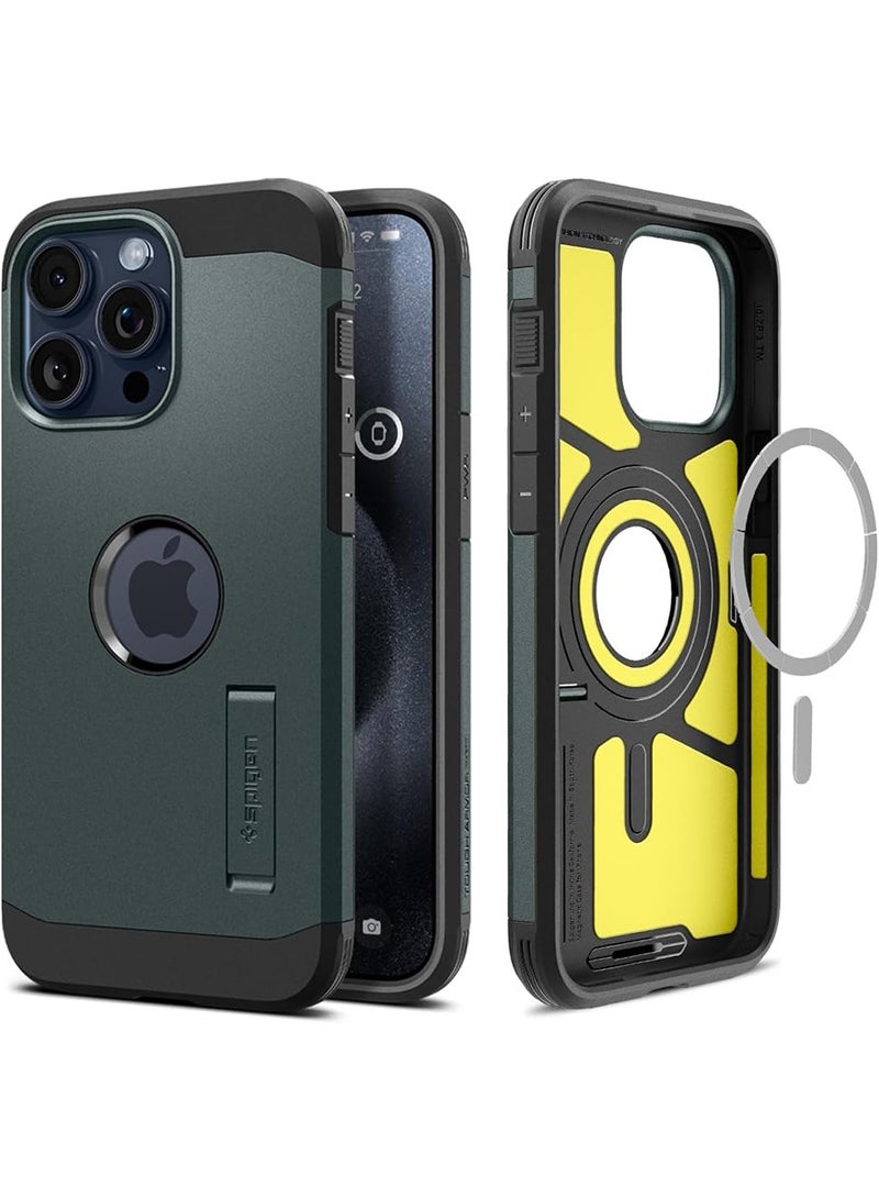 Spigen Tough Armor MagFit for iPhone 15 Pro Max Case Cover with MagSafe – Abyss Green