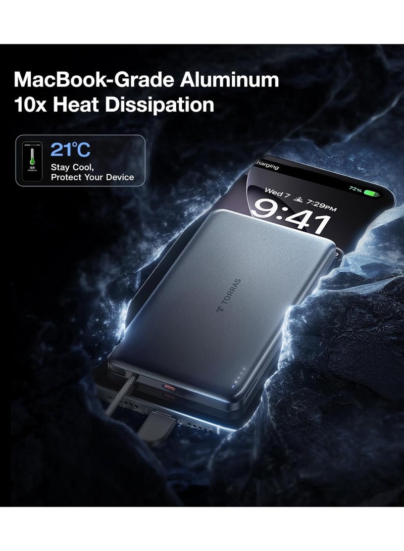 * 22.5 W Fast Charging (USB-C PD) — Supports high-speed 22.5 W power delivery out (5 V/3 A) and 20 W input, ensuring fast recharge cycles and quick top-ups for your devices