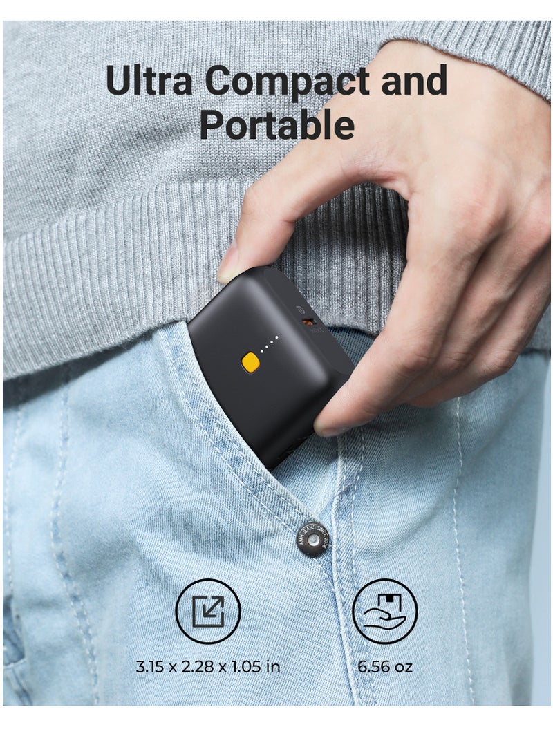 👜 Compact and lightweight design: Slim and lightweight at 6.56 ounces and measuring 3.15 x 2.28 x 1.05 inches, it fits easily into pockets or bags. Ideal for travelers, commuters, and those who need powerful, portable charging on the go without adding bulk.